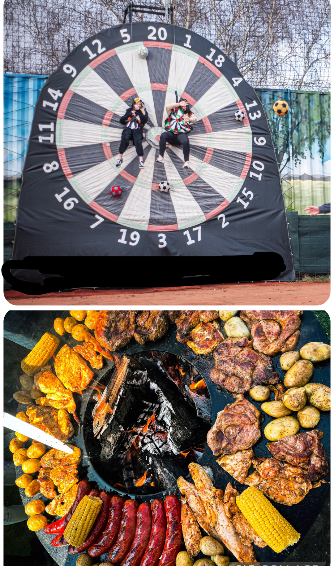 Na het spel ga je naar je privé BBQ-ruimte om te ontspannen, te grillen en te genieten van een feestmaal met je groep. Elke gast krijgt: 400g gemengd vlees (kip, varkensvlees, worstjes), vers brood en een selectie sauzen.